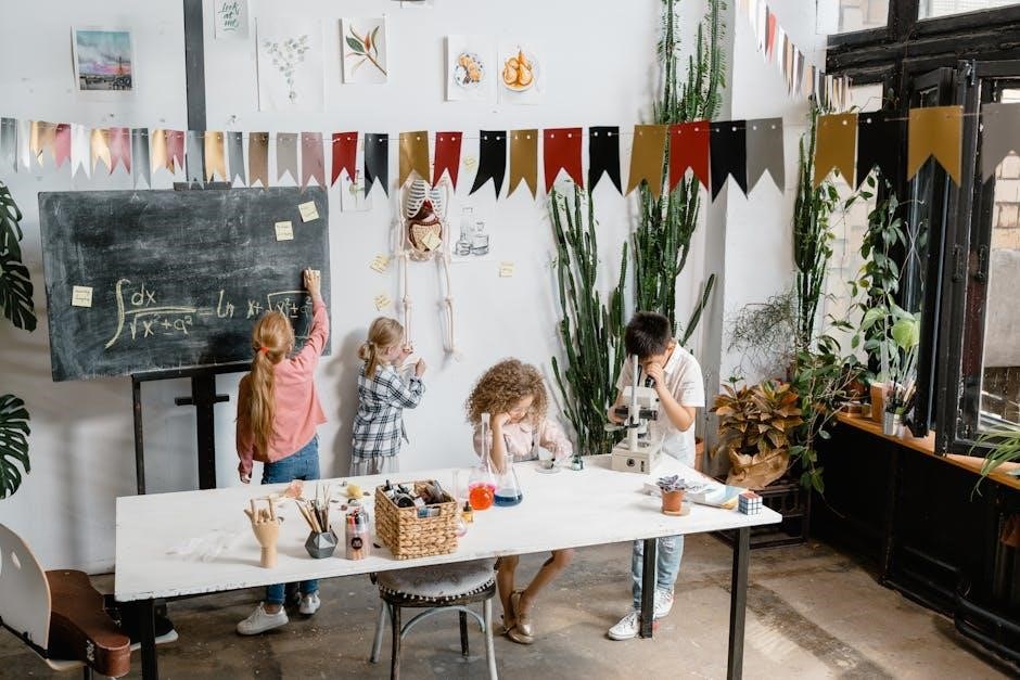Creating inclusive math learning environments involves fostering equity and belonging for all students․ Jo Boaler advocates for classrooms where diverse perspectives are valued and students feel empowered to participate․ Group work, project-based learning, and real-world applications help students see math as collaborative and relevant․ Teachers should differentiate instruction to meet varied learning needs, incorporating visual, tactile, and verbal approaches․ Culturally responsive teaching ensures math problems reflect students’ lives, making the subject more relatable․ By shifting from a “genius” mindset to a growth-oriented, creative approach, educators can build confidence and engagement, ensuring every student thrives in math․ Professional development for teachers is key to sustaining these practices․